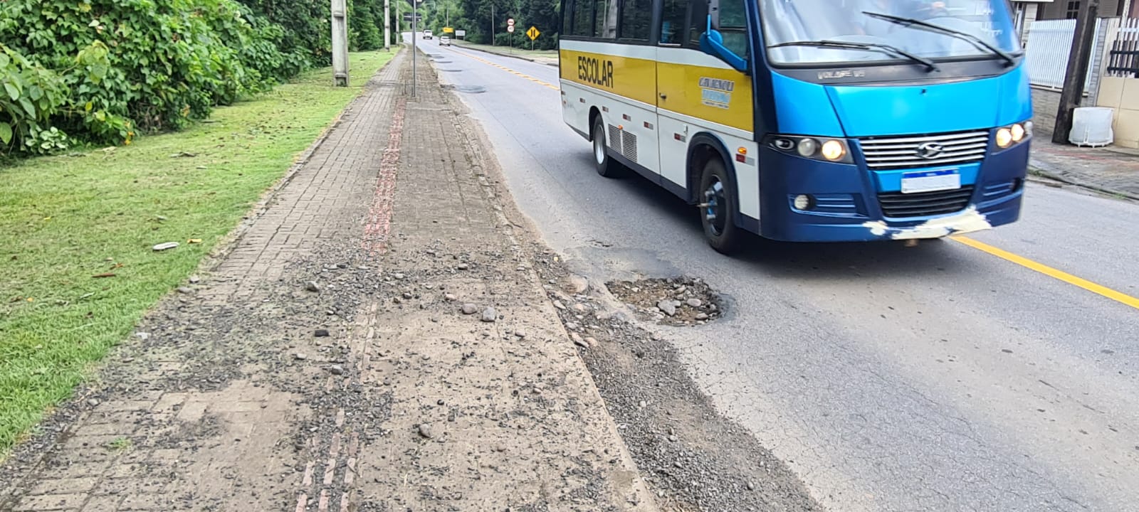 Reginaldo também destacou que, em dias de chuva, a situação piora significativamente. “A água cobre os buracos, e aí fica impossível saber onde estão. Já vi gente de moto quase cair por causa disso”, explicou. Ele acrescentou que as pedras soltas do asfalto acabam indo parar nas calçadas, tornando o local perigoso também para pedestres e ciclistas.