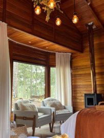 Cada cabana é cuidadosamente decorada de forma estilosa, proporcionando uma experiência diferenciada. As acomodações são bem equipadas com lareiras, ar-condicionado, TV de tela plana, banheiro privativo, roupa de cama, toalhas, mini-bar e máquina de café, garantindo o conforto necessário para uma estadia relaxante.